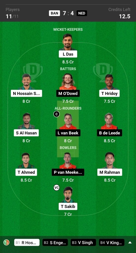 Both teams lost to South Africa before this match. Winning this game is important for both teams to have a better chance of moving forward in the tournament. Bangladesh has beaten the Netherlands in three out of their last four matches. Bangladesh’s strong bowlers give them an advantage. The Netherlands is known for surprising victories, so it’ll be interesting to see if they can win this time.