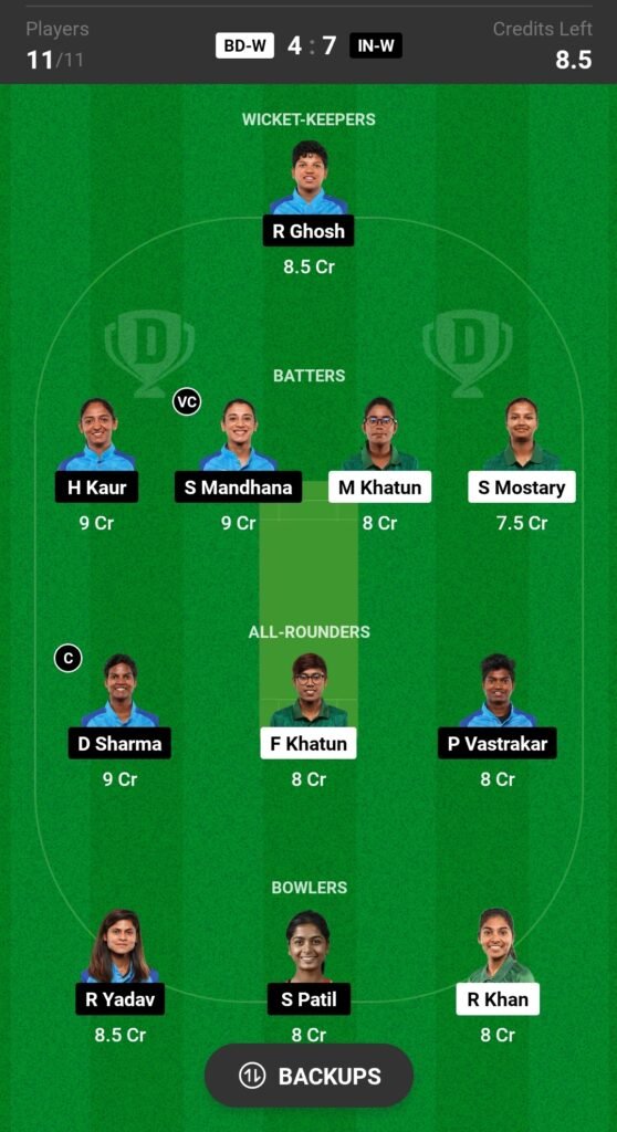 | Top Order Batter | Smriti Mandhana,Harmanpreet Kaur , Murshida Khatun, Sobhana Mostary |