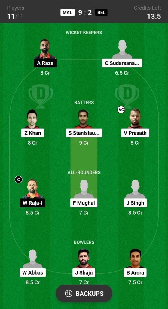 Malta: Zeeshan Khan, Basil George, Darshit Patankar, Jaspal Singh, Samuel Stanislaus, Varun Prasath Thamotharam (c), Fanyan Mughal, Bikram Arora, Chanjal Sudarsanan (wk), Waseem Abbas, Justin Shaju